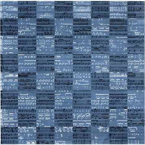 Chess Pieces beautifully combines vision and sound into one artwork: a painted musical score. Not only does the painting contain musical notation, but the score itself is actively constrained by its physical requirements, similarly to some of Cage’s other works. In “Water Walk” (1960), for example, arbitrary constraints of a kind are imposed onto the music—this and many of Cage’s songs were composed using elements of randomness, frequently relying on the Chinese I Ching. In Chess Pieces, the musical notation is constrained to fit the exact physical space of the chessboard: all the notes must fit perfectly into the 64 squares.